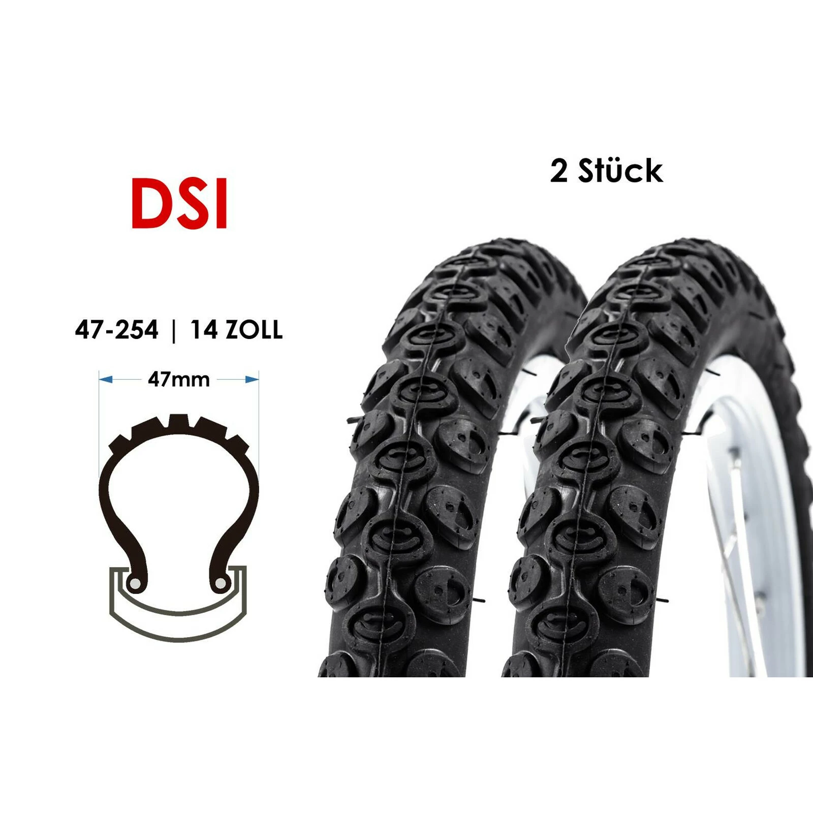 2 Stück 14 Zoll DSI Fahrrad Reifen 47-254 Kinder Rad Laufrad 14×1.75 MTB Schwarz