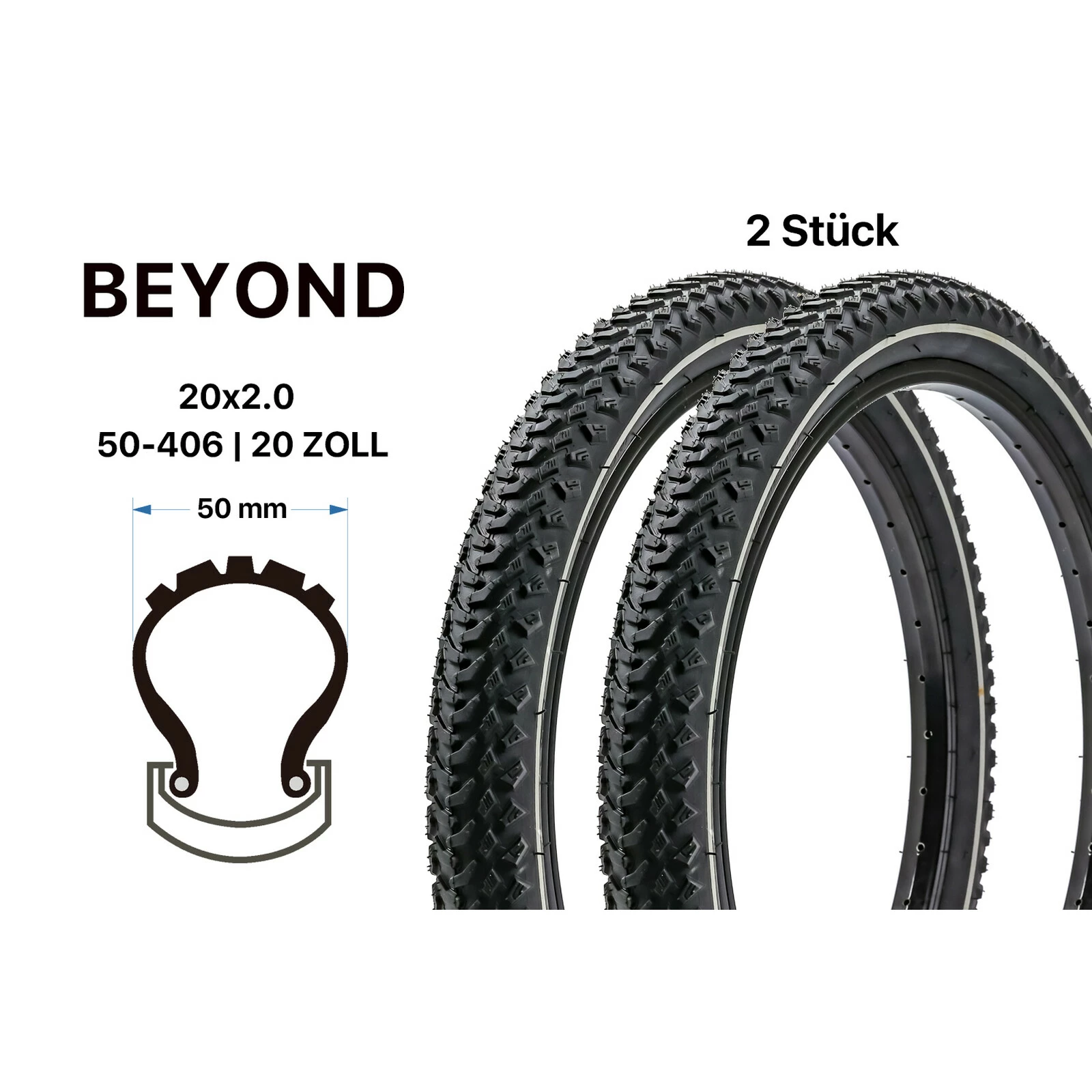 2 Stück 20 Zoll BEYOND Reifen SET 50-406 Mountain Bike Klapp Rad 20×2.00 REFLEX