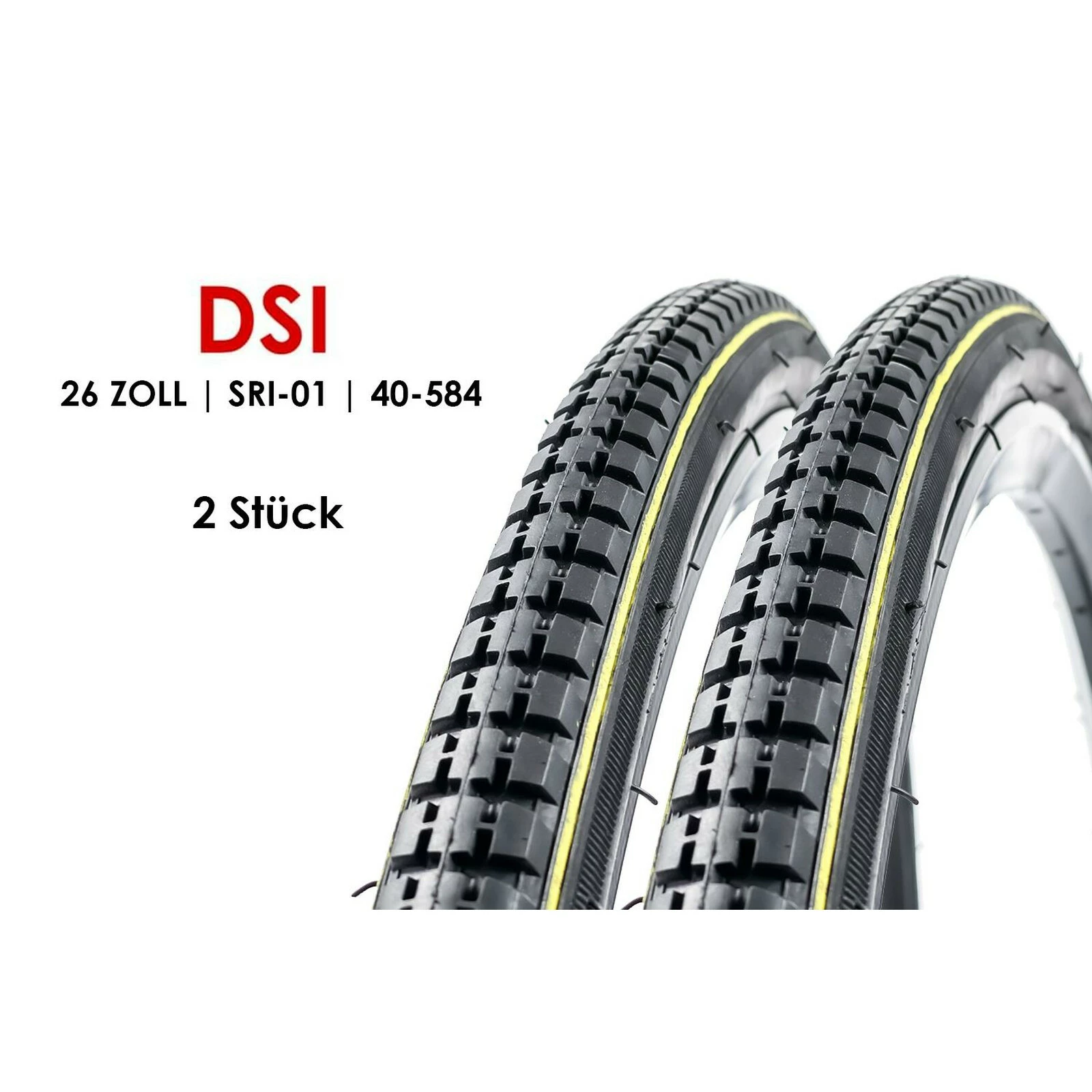2 Stück 26 Zoll Fahrrad Reifen DSI City Bike 26×1½ Mantel Decke 40-584 Schwarz Gelbe Linie