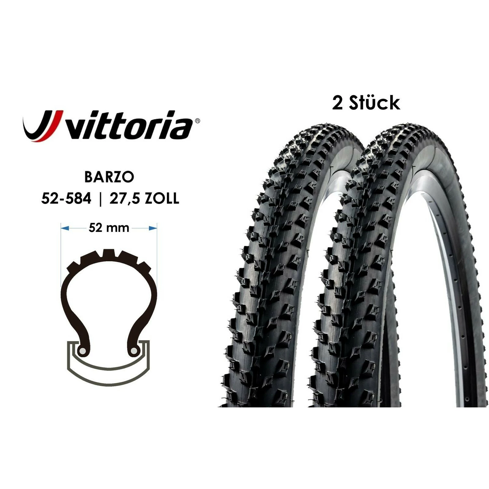 2 Stück 27.5 Zoll VITTORIA Barzo Fahrrad Falt Reifen 27.5×2.1 Mountain Bike 52-584 Schwarz