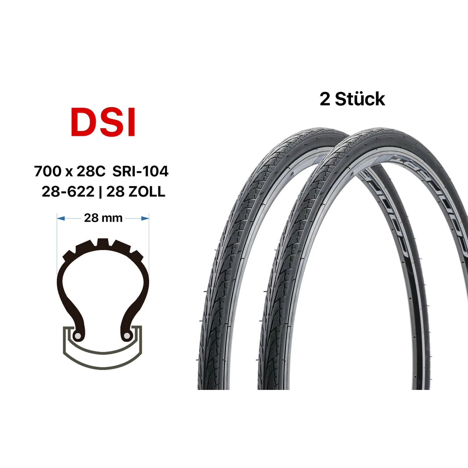 2 Stück 28 Zoll DSI Fahrrad Reifen 28×1.10 City Bike Rennrad 28-622