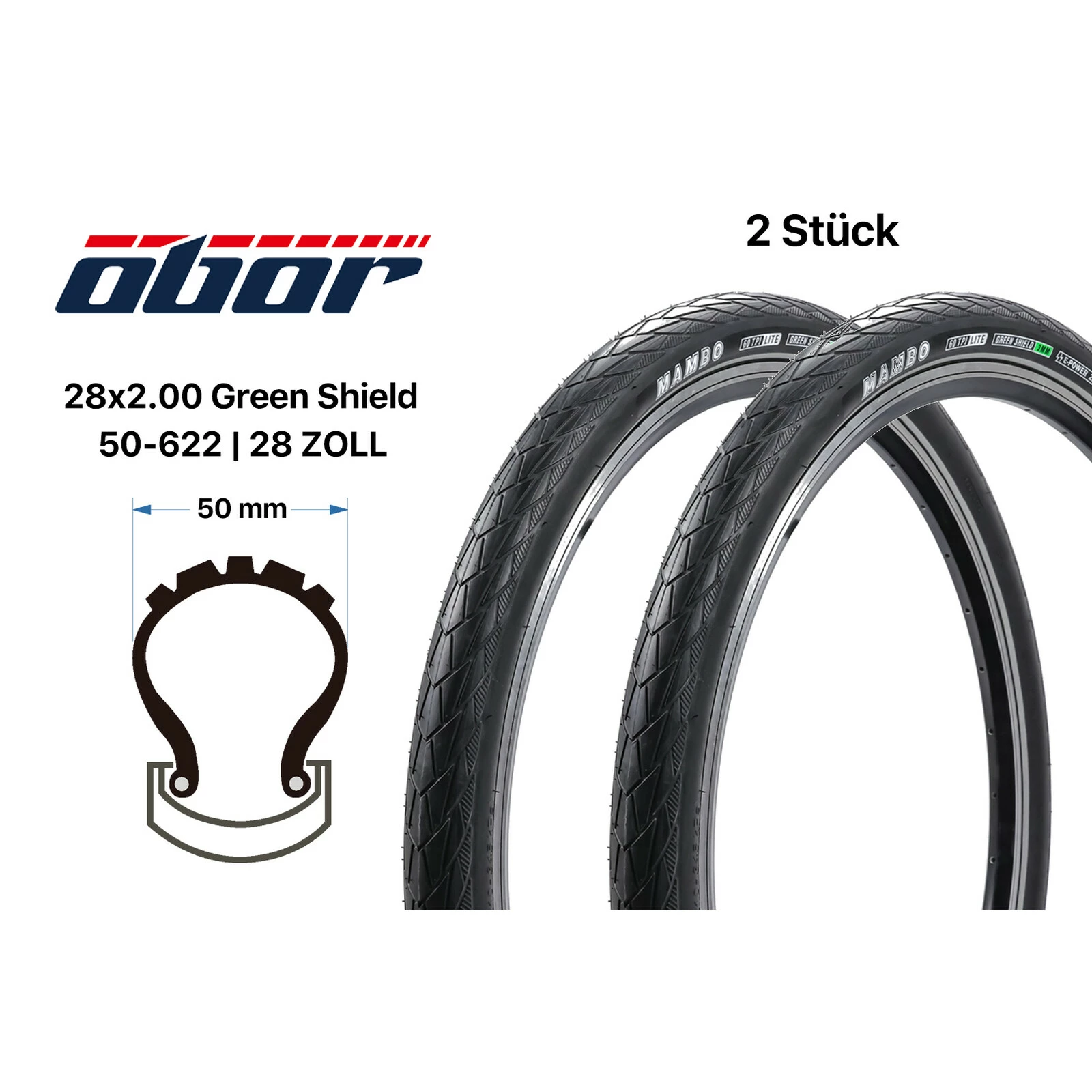 2 Stück 28 Zoll Fahrrad Reifen SET OBOR Mambo 28×2.00 City Bike Pannenschutz E25-Ready
