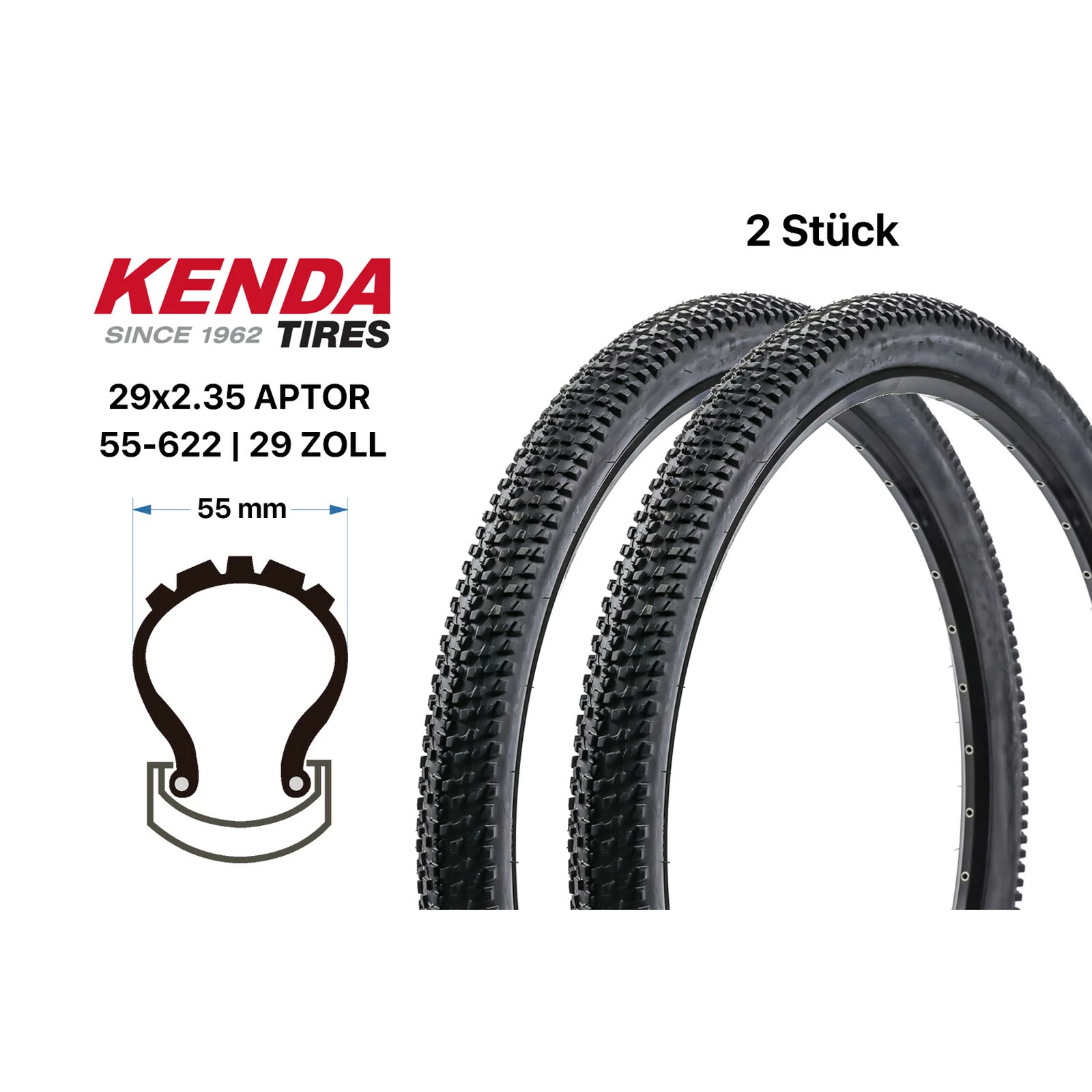 2 Stück 29 Zoll KENDA APTOR Fahrrad Reifen SET 55-622 MTB Cross 29×2.35 Tire