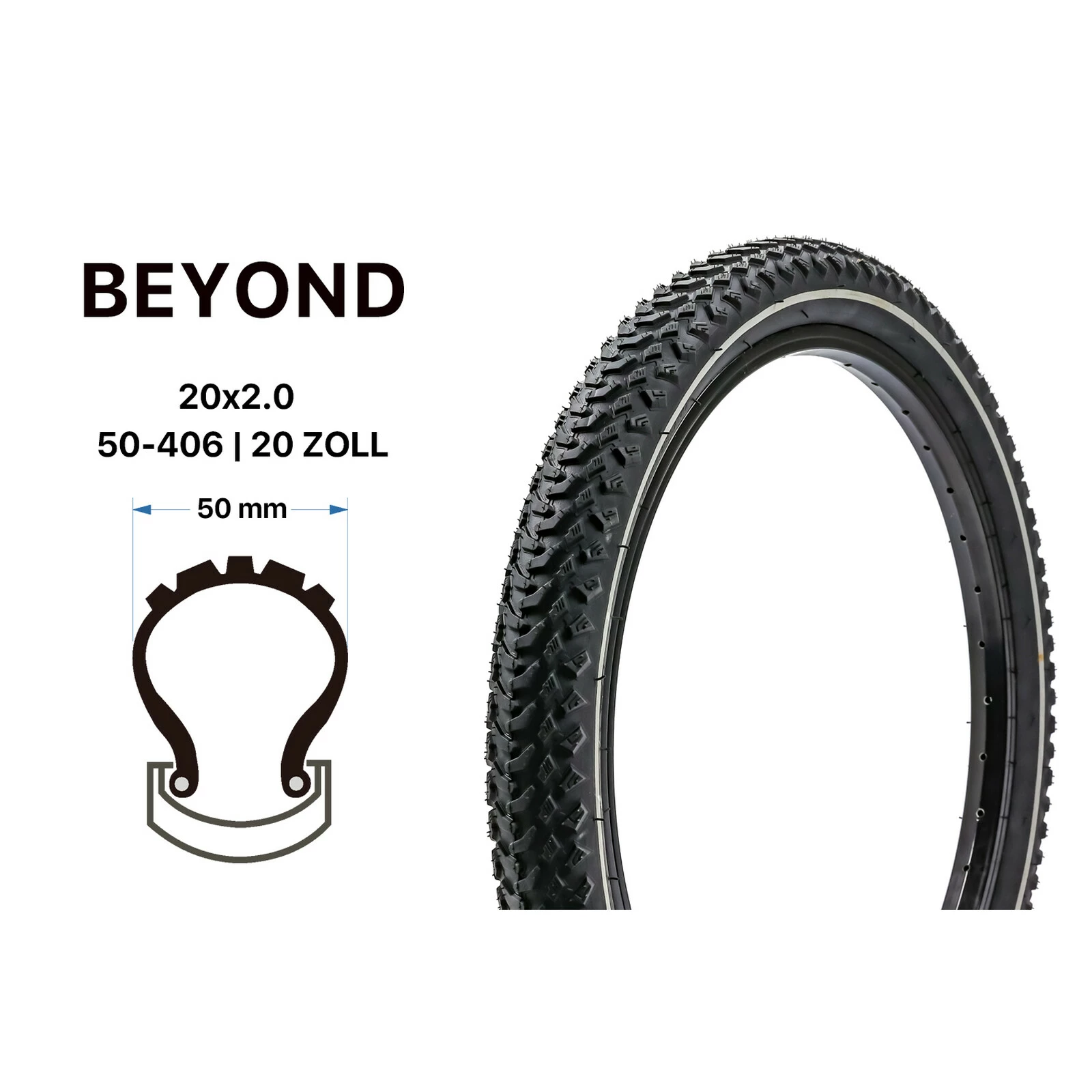 20 Zoll BEYOND Fahrrad Reifen 50-406 MTB Faltrad 20×2.00 Schwarz REFLEX