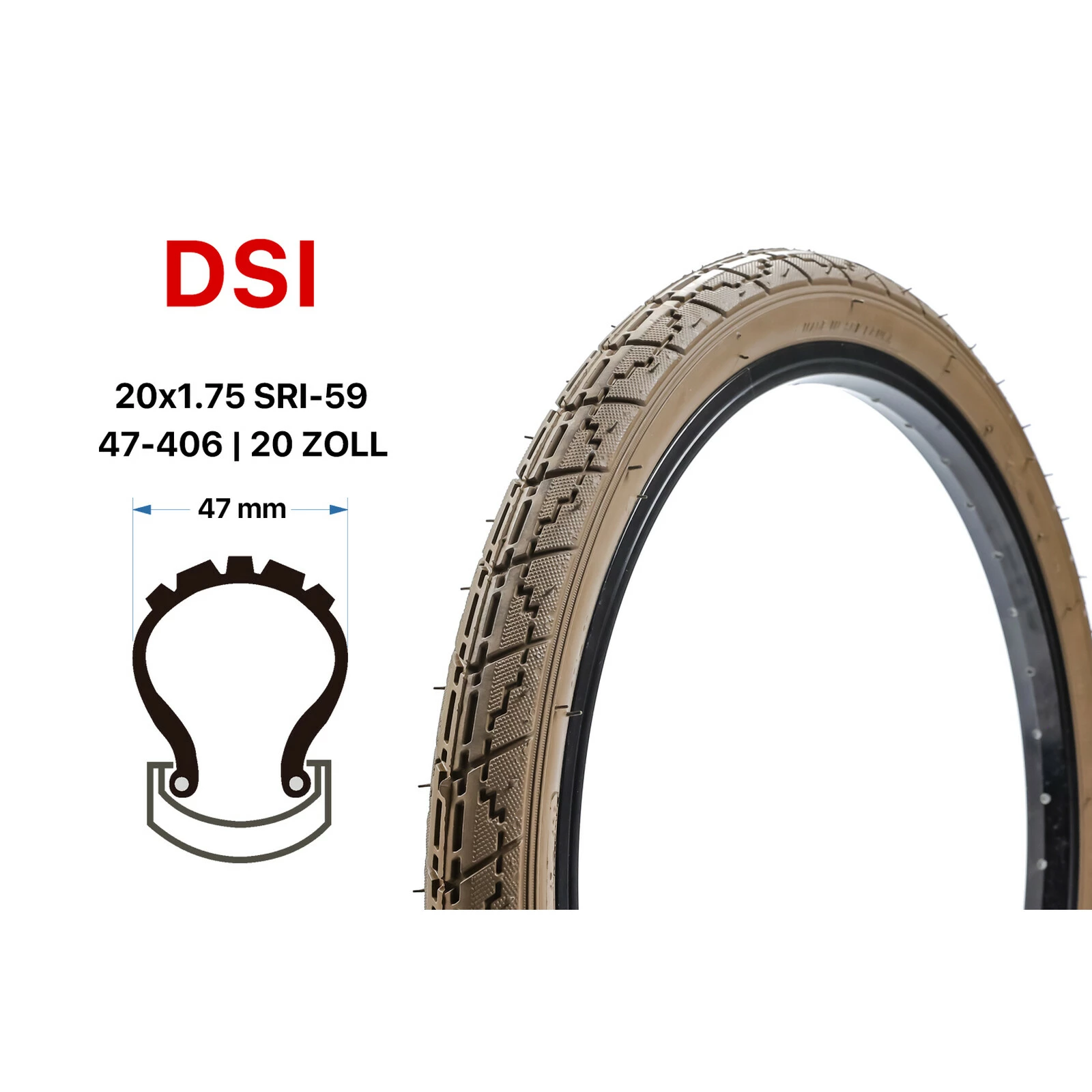 20 Zoll Fahrrad Reifen DSI 20×1.75 City Bike Kinderrad 47-406 Tire Braun SRI 59