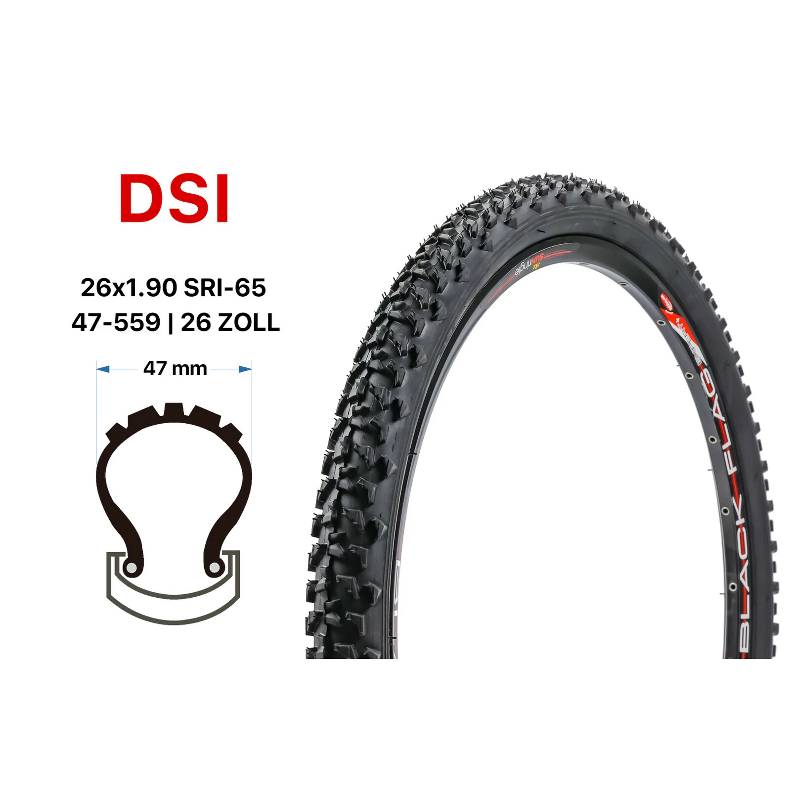 26 Zoll DSI Fahrrad Reifen 47-559 Mountain Bike MTB 26×1.90 Schwarz