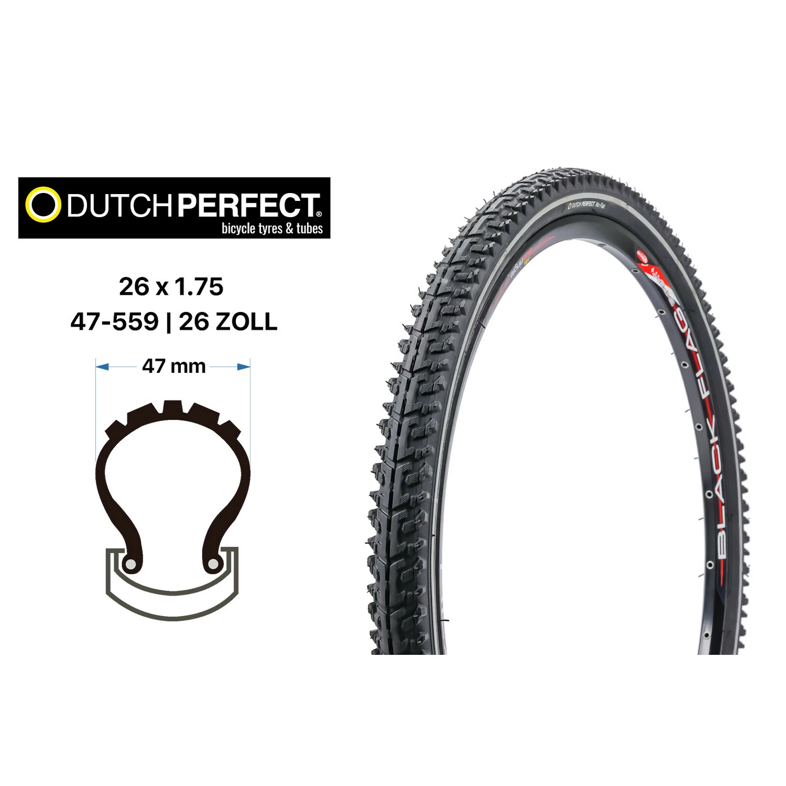 Fahrradreifen für Trekkingbikes, Tourenräder, MTB Marke: Dutch Perfect Reifentyp: Drahtreifen Grösse: 26×1 75 Zoll (Aussendurchmesser x Breite in Zoll) ETRT