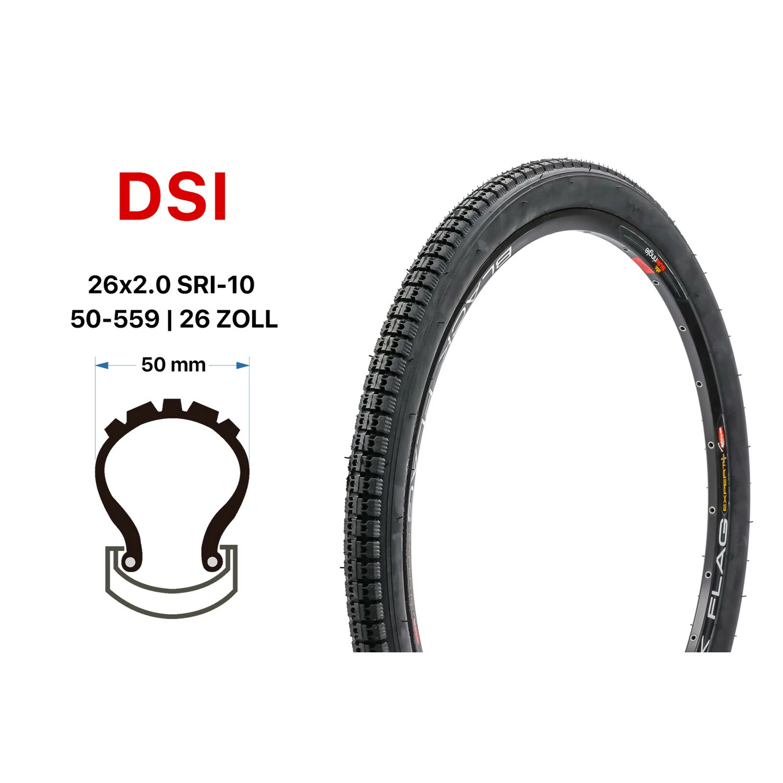 26 Zoll Fahrrad Reifen DSI 50-559 City MTB Trekking Bike 26×2.0 Tire Schwarz