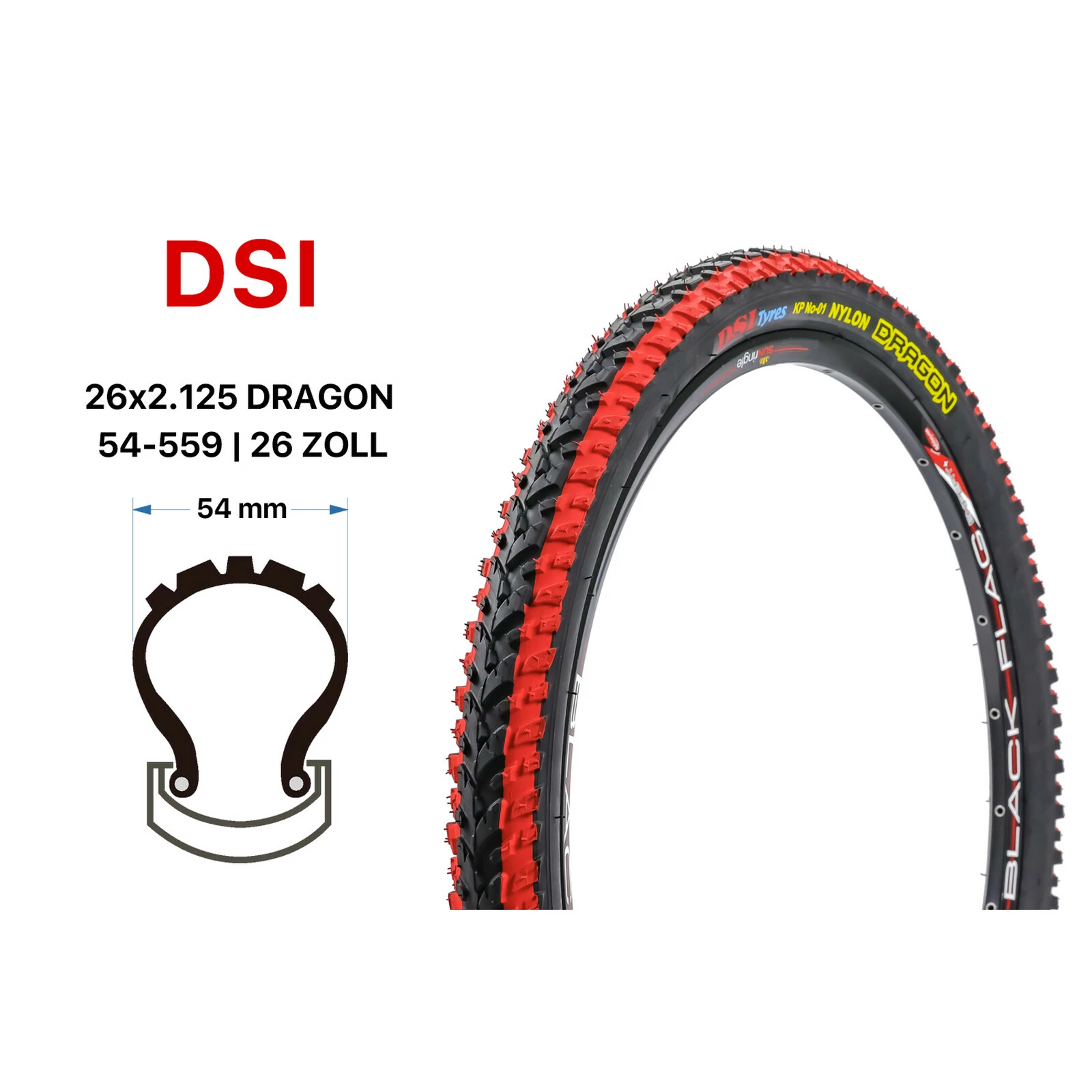 26 Zoll Fahrrad Reifen DSI Dragon 54-559 Mountain Bike MTB 26×2.125 Schwarz Rot