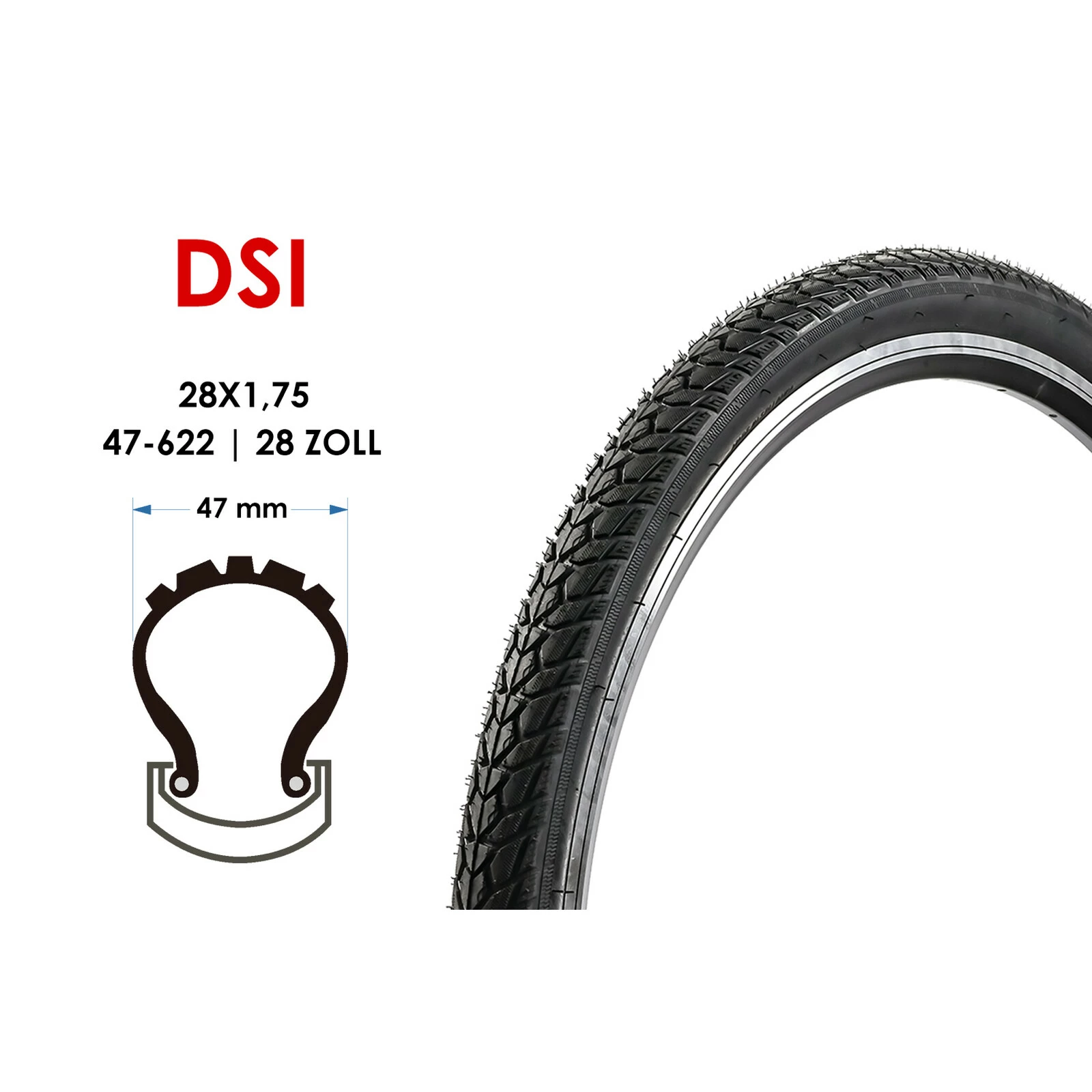 28 Zoll DSI Fahrrad Reifen 28×1.75 Trekking City Bike Tire 47-622 Schwarz