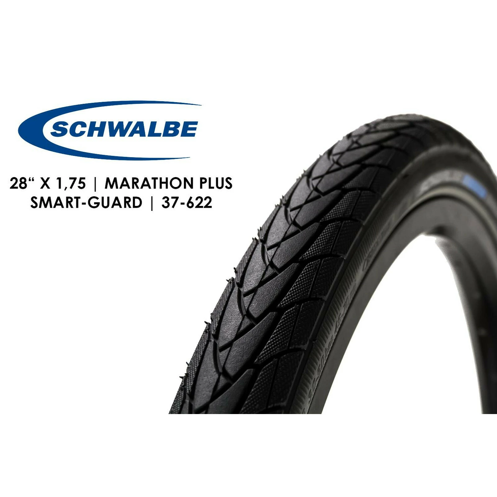 Marke: Schwalbe Modell: MARATHON PLUS Produktart: Drahtreifen ETRTO: 37-622 Maße: 28×1 4 Farbe: Schwarz mit Reflektionsstreifen Schwalbes meistverkauftes M