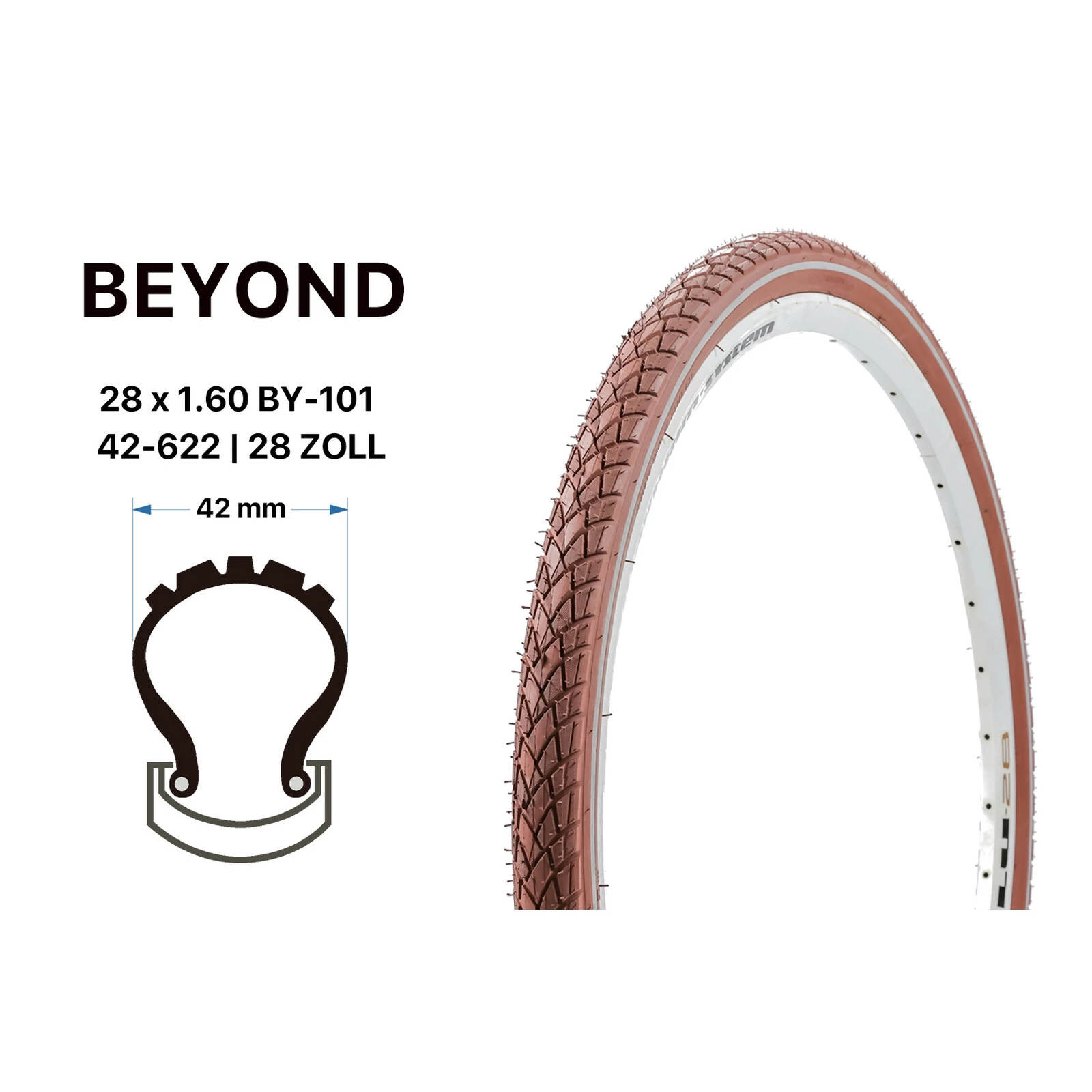 Fahrradreifen für City Bikes, Trekkingräder Marke: Beyond Reifentyp: Drahtreifen Grösse: 28×1 6 Zoll (Aussendurchmesser x Breite in Zoll) ETRTO: 42-622 (Bre