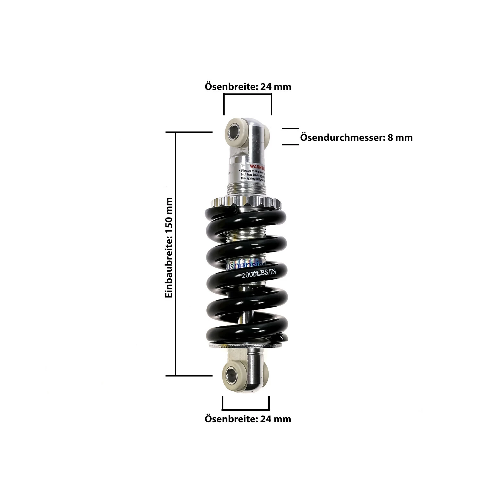 Lu Jin Fahrrad Dämpfer Modellnummer: LJ400A Einbaulänge: 150 mm Federstärke: 2000 LBS Federsystem: Stahlfeder Ösenbreite: 24 mm Ösendurchmesser: 8 mm Durchm